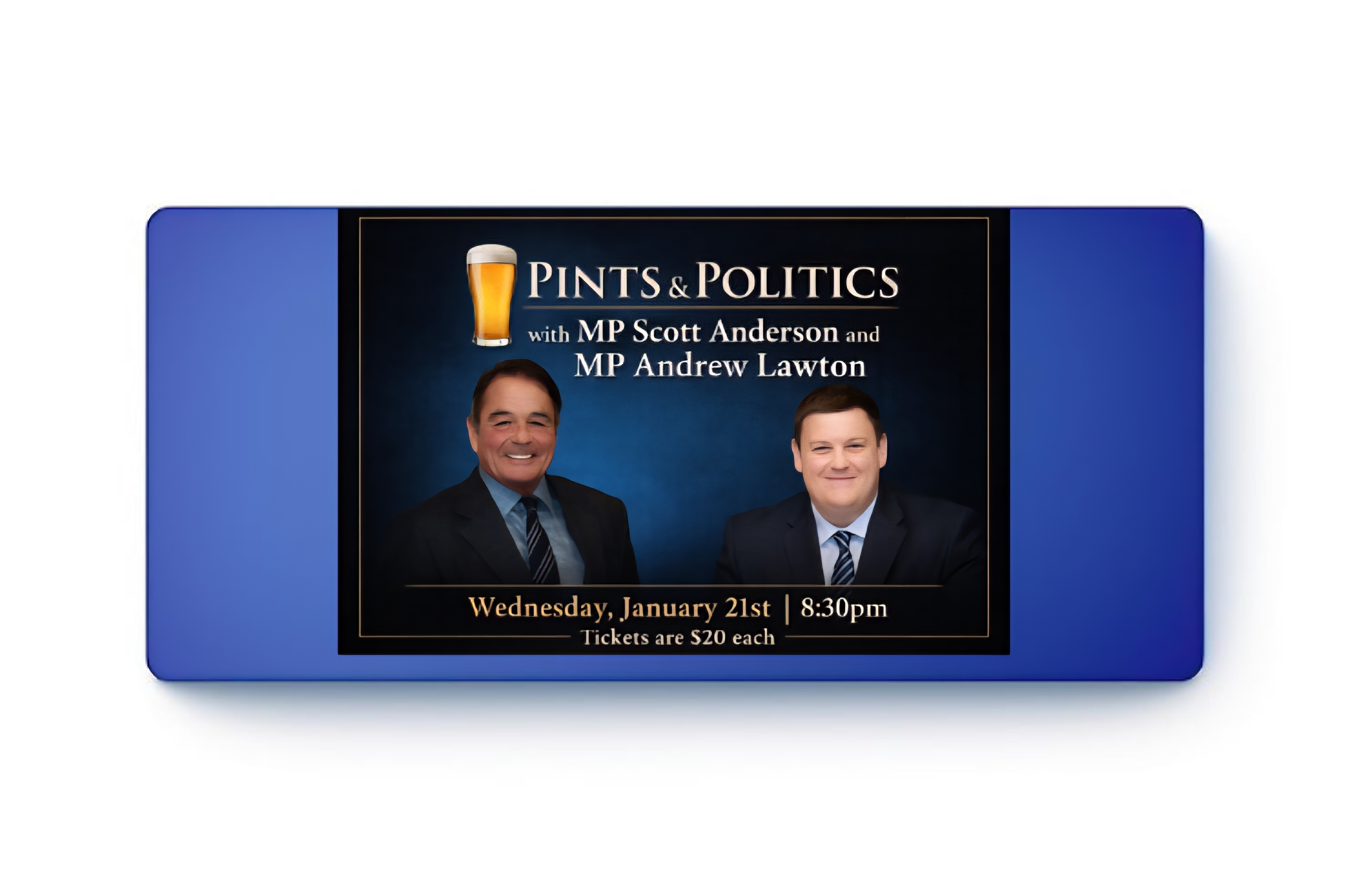We work year-round to strengthen the local Conservative movement—growing membership, engaging our communities, supporting our Conservative Member of Parliament Scott Anderson, raising funds locally, and preparing our riding for the next federal election.